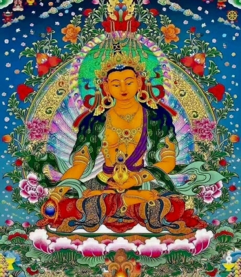 One of the main Bodhisattvas in his entourage is Zambala, the manifestation of wealth and richness. Ratnasambhava is also associated with beauty and art.