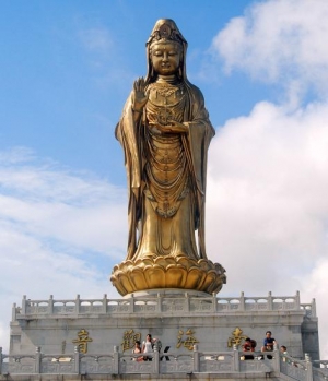 most notably in the Bodhisattva Avalokiteśvara, who looks down Compassionately on the world and responds to its cries of anguish.