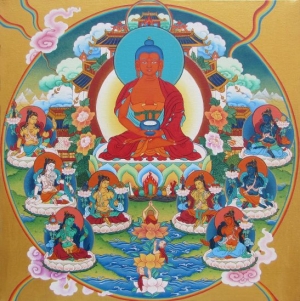 But also of historical significance are the Eastern Pure Land of Akṣobhya, Abhirati (Enchantment), and the Eastern land of Bhaiṣajyaguru, Vaiḍūryanirbhāsa (Shining like Beryl).