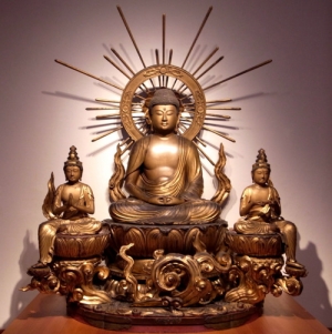 Since Amida embodies the realization of ultimate truth, surpassing all forms, long or short, square or round, and also all colours, blue, yellow, red, white, and black, how then can his stature be determined as large or small?